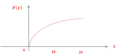 F(x)={( 0 X<0 x^2/200 0<X<10x/5-x^2/100-1 10<X<20 1 20<x)┤