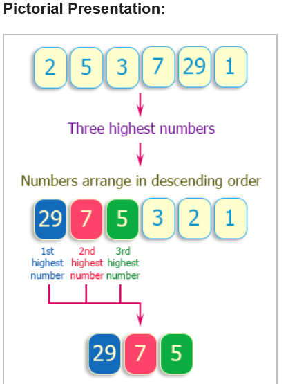 Write a C++ program which prints three highest numbers from a list of numbers in descending order