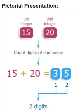Write a C++ program to compute the sum of the two given integers and count the number of digits of the sum value