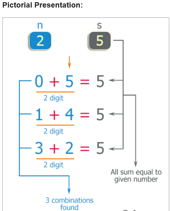 Write a C++ program to which reads n digits chosen from 0 to 9 and counts the number of combinations where the sum of the digits equals to given number. Do not use the same digits in a combination