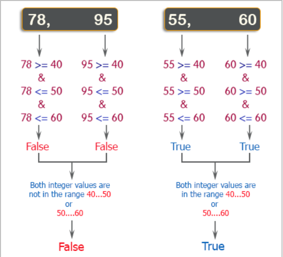 Write a C++ program to check whether two given integers are in the range 40..50 inclusive, or they are both in the range 50..60 inclusive