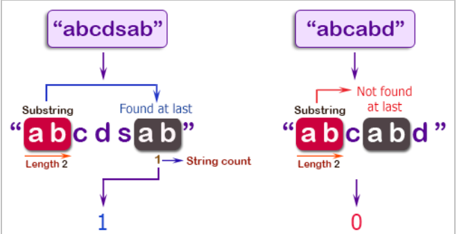 Write a C++ program to count a substring of length 2 appears in a given string and also as the last 2 characters of the string. Do not count the end substring