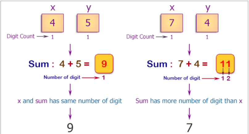 Write a C++ program to compute the sum of two given non-negative integers x and y as long as the sum has the same number of digits as x. If the sum has more digits than x then return x without y