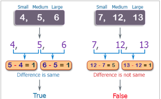 Write a C++ program to check three given integers (small, medium and large) and return true if the difference between small and medium and the difference between medium and large is same