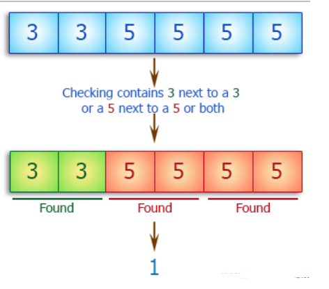 Write a C++ program to check if an array of integers contains a 3 next to a 3 or a 5 next to a 5 or both
