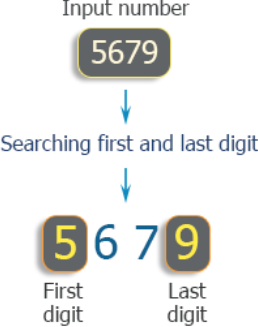 Write a program in C++ to find the first and last digit of a number