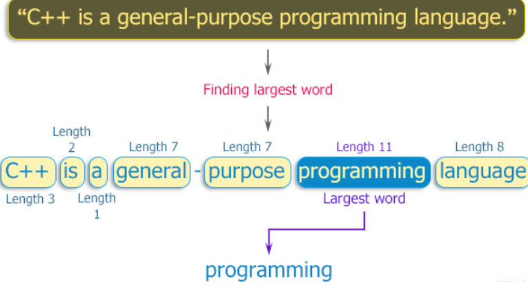Write a C++ program to find the largest word in a given string