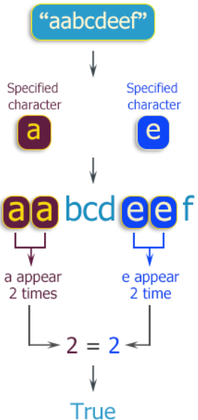 Write a C++ program to check whether two characters present equally in a given string