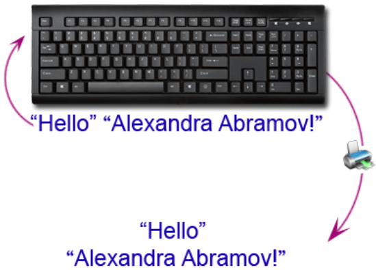 Write a C# Sharp program to print Hello and your name in a separate line