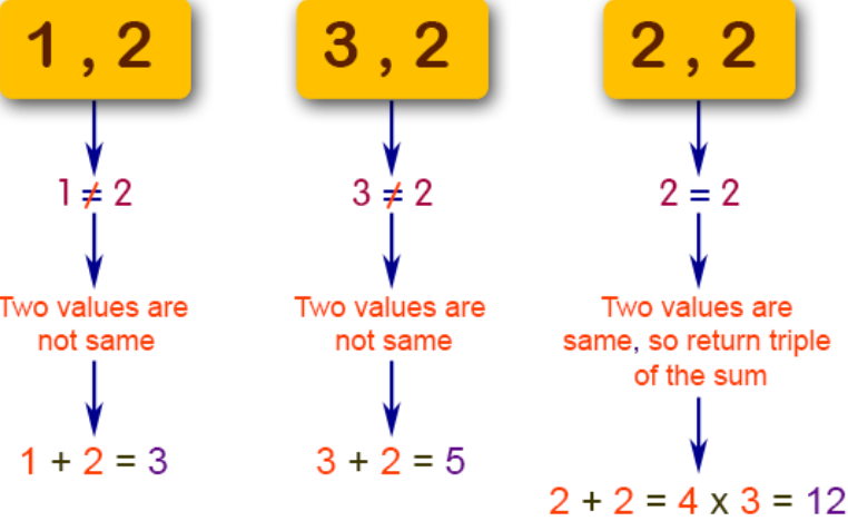 Write a C# Sharp program to compute the sum of the two given integer values. If the two values are the same, then return triple their sum