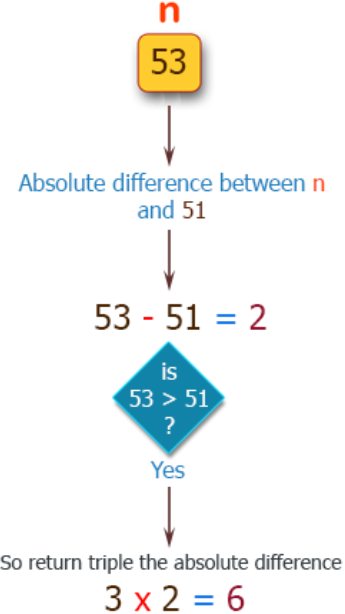 Write a C# Sharp program to get the absolute difference between n and 51. If n is greater than 51 return triple the absolute difference