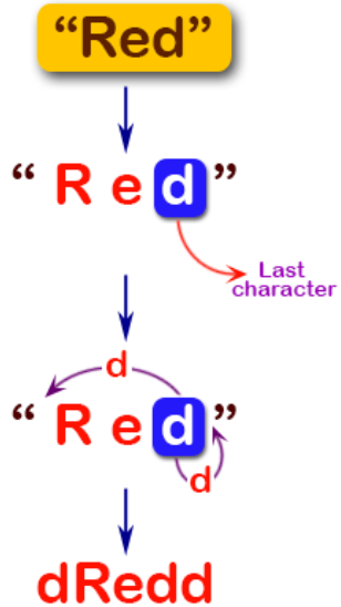 Write a C# Sharp program to create a new string with the last char added at the front and back of a given string of length 1 or more