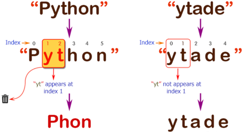 Write a C# Sharp program to check if a string 'yt' appears at index 1 in a given string. If it appears return a string without 'yt' otherwise return the original string