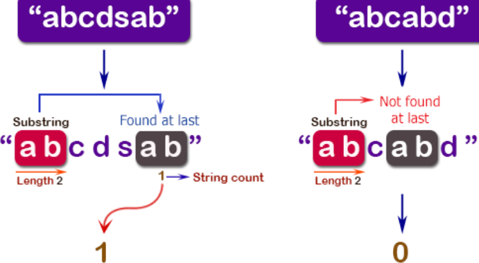 Write a C# Sharp program to count a substring of length 2 appears in a given string and also as the last 2 characters of the string. Do not count the end substring