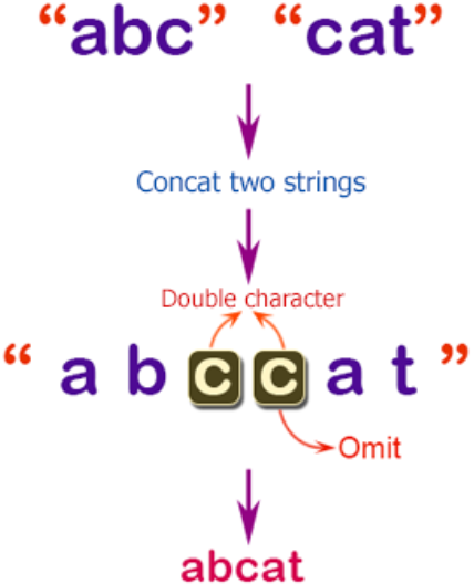 Write a C# Sharp program to combine two given strings (lowercase). If there are any double character in new string then omit one character