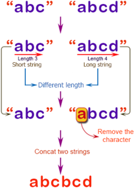 Write a C# Sharp program to combine two given strings. If the given strings have different length remove the characters from the longer string