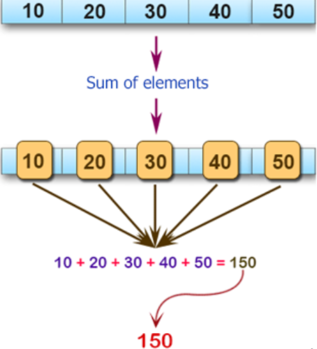 Write a C# Sharp program to compute the sum of the elements of an given array of integers