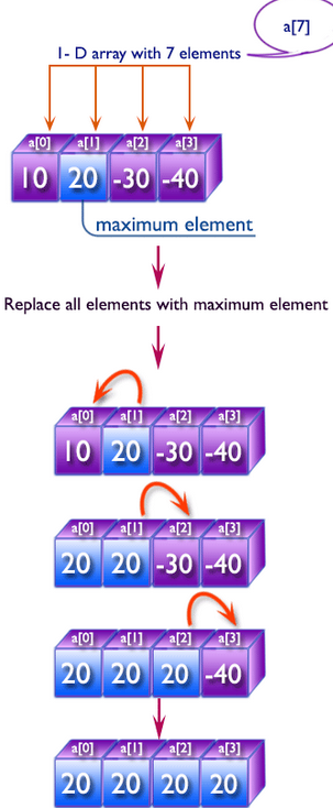 Write a C# Sharp program to find out the maximum element between the first or last element in a given array of integers ( length 4), replace all elements with maximum element