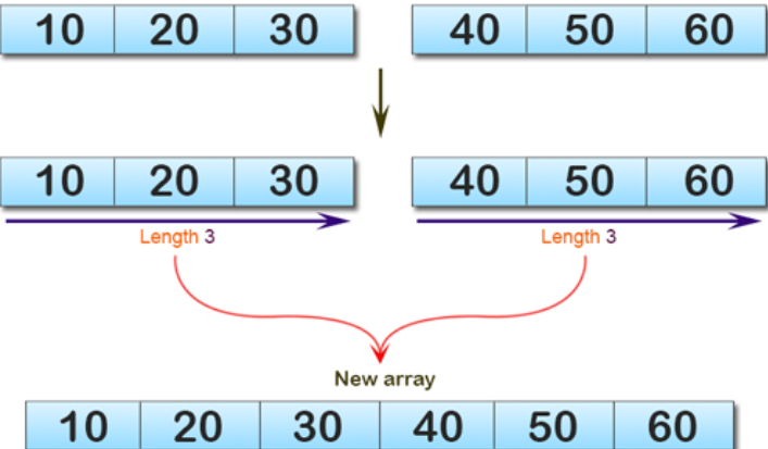 Write a C# Sharp program to create a new array from two give array of integers, each length 3