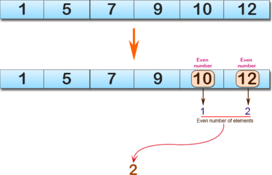 Write a C# Sharp program to count even number of elements in a given array of integers