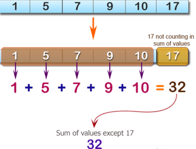 Write a C# Sharp program to compute the sum of values in a given array of integers except the number 17. Return 0 if the given array has no integer