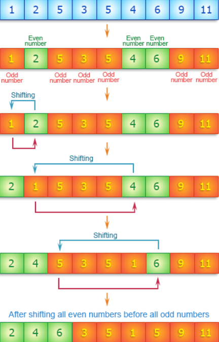 Write a C# Sharp program to create new array from a given array of integers shifting all even numbers before all odd numbers