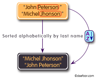 Write a C# Sharp program to compare the last names of two people. It then lists them in alphabetical order