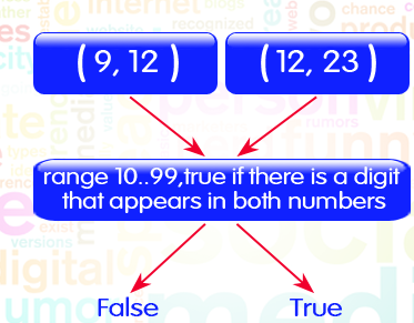 Write a Ruby program to check two given integers, each in the range 10..99, return true if there is a digit that appears in both numbers