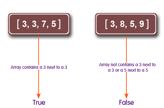 def check_array(nums) no3pair = 1 no5pair = 1 i = 0; while i < nums.length && (no3pair + no5pair != 0) if(nums[i] == 3 && nums[i+1] == 3) no3pair = 0 elsif(nums[i] == 5 && nums[i+1] == 5) no5pair = 0 end i = i + 1 end return ((no3pair ^ no5pair) == 1) end print check_array([3, 3, 7, 5]),"\n" print check_array([3, 8, 5, 9]),"\n" print check_array([3, 7, 5, 5]),"\n"