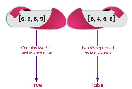 def check_array(nums) i = 0; while i < nums.length if(nums[i] == 6) if(nums[i+1] == 6) return true elsif(i < nums.length - 2 && nums[i+2] == 6) return true end end i = i + 1 end return false end print check_array([6, 3, 6, 5]),"\n" print check_array([6, 6, 5, 9]),"\n" print check_array([6, 4, 5, 6]),"\n