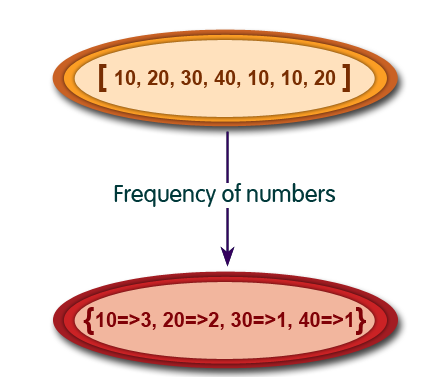 Original array: [10, 20, 30, 40, 10, 10, 20] Frequency of numbers: {10=>3, 20=>2, 30=>1, 40=>1}need an explanation for this answer? contact us directly to get an explanation for this answer