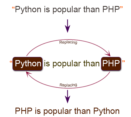 Write a PHP program to replace a string "Python" with "PHP" and "Python" with " PHP" in a given string.