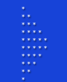 <?php $n=5; for($i=1; $i<=$n; $i++) { for($j=1; $j<=$i; $j++) { echo ' * '; } echo '\n'; } for($i=$n; $i>=1; $i--) { for($j=1; $j<=$i; $j++) { echo ' * '; } echo '\n '; } ?>