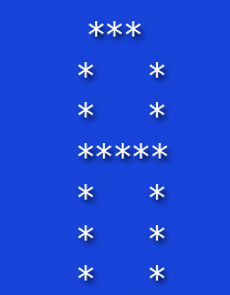 <?php for ($row=0; $row<=7; $row++) { for ($column=0; $column<=7; $column++) { if ((($column == 1 or $column == 5) and $row != 0) or (($row == 0 or $row == 3) and ($column > 1 and $column < 5))) echo "*"; else echo " "; } echo "\n"; } ?>