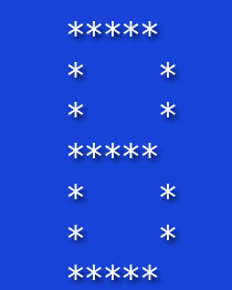 <?php for ($row=0; $row<7; $row++) { for ($column=0; $column<=7; $column++) { if ($column == 1 or (($row == 0 or $row == 3 or $row == 6) and ($column < 5 and $column > 1)) or ($column == 5 and ($row != 0 and $row != 3 and $row != 6))) echo "*"; else echo " "; } echo "\n"; } ?>