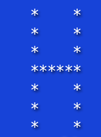 <?php for ($row=0; $row<7; $row++) { for ($column=0; $column<=7; $column++) { if (($column == 1 or $column == 5) or ($row == 3 and $column > 1 and $column < 6)) echo "*"; else echo " "; } echo "\n"; } ?>