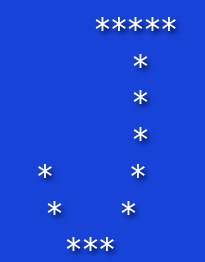 <?php for ($row=0; $row<7; $row++) { for ($column=0; $column<=7; $column++) { if (($column == 4 and $row != 6) or ($row == 0 and $column > 2 and $column < 6) or ($row == 6 and $column == 3) or ($row == 5 and $column == 2)) echo "*"; else echo " "; } echo "\n"; } ?>