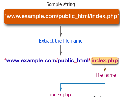 <?php $path = 'www.example.com/public_html/index.php'; $file_name = substr(strrchr($path, "/"), 1); echo $file_name."\n"; // "index.php" ?>