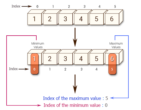 Original array: [1 2 3 4 5 6] Maximum Values: 5 Minimum Values: 0