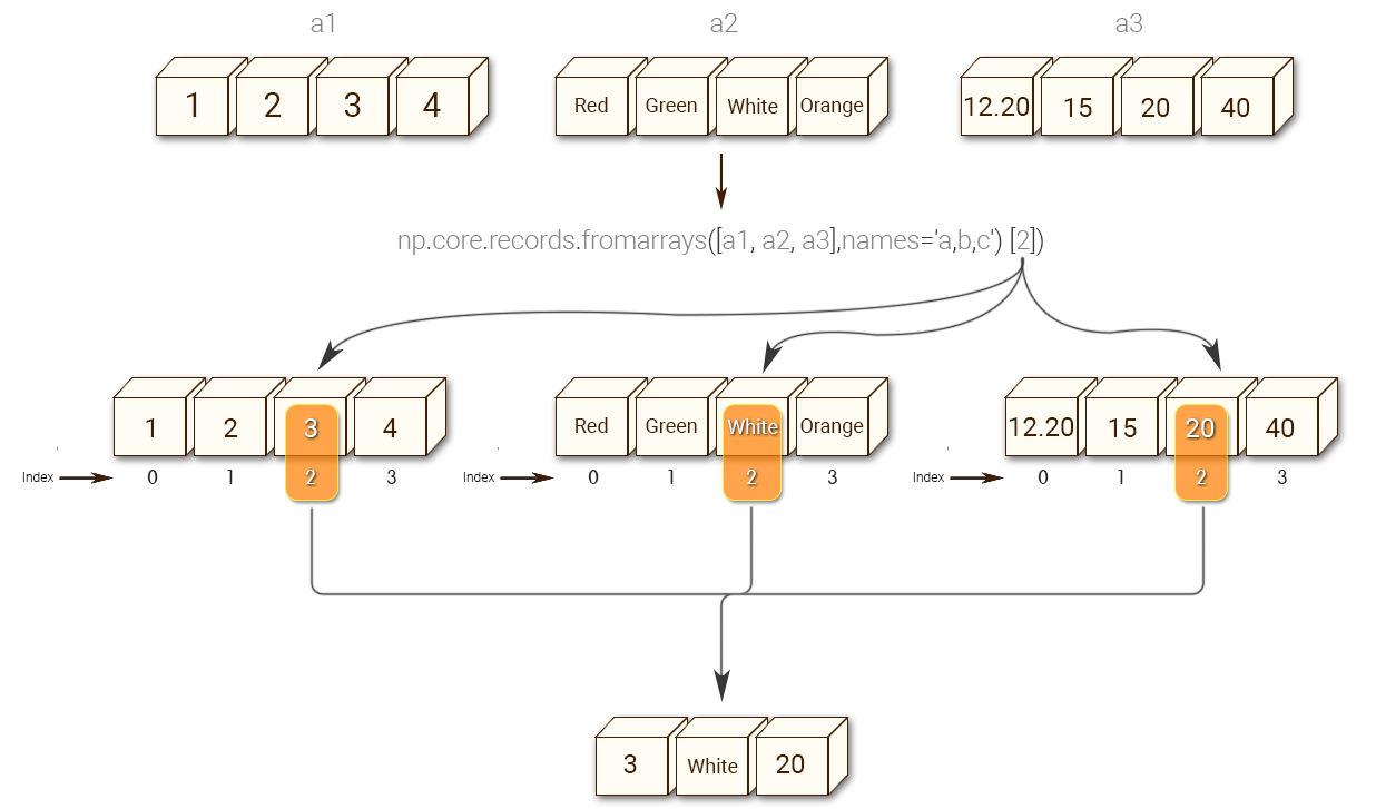 Write a NumPy program to create a record array from a (flat) list of arrays